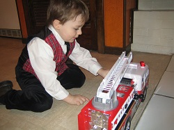 PATIENTLY WAITING FOR SANTA BY THE FIRE...