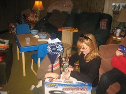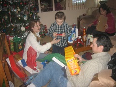 FILLING STOCKINGS BY THE CHIMNEY--VISITING FAMILIES--PLACING PRESENTS UNDER THE TREE